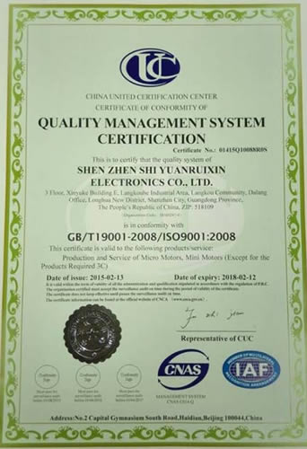 深圳市圓睿鑫電子有限公司自2008年創立以來,經過誠信耕耘,在為期兩年的時間內,已通過ISO9001:2000國際質量體系認證。公司廠房占地面積2000多平方米,員工100人,專業技術工程師6名,擁有國內最先進的生產和檢測設備,年產各類減速電機超過2~300萬臺。因公司發展需要,于2020年底,將生產基地遷往擁有最美小鎮之稱的東莞市清溪鎮,依山傍水,依托美麗的大自然環境和地方文化,全新的東莞市圓睿鑫電子有限公司將借助深圳母公司平臺,一步步走上新的臺階。